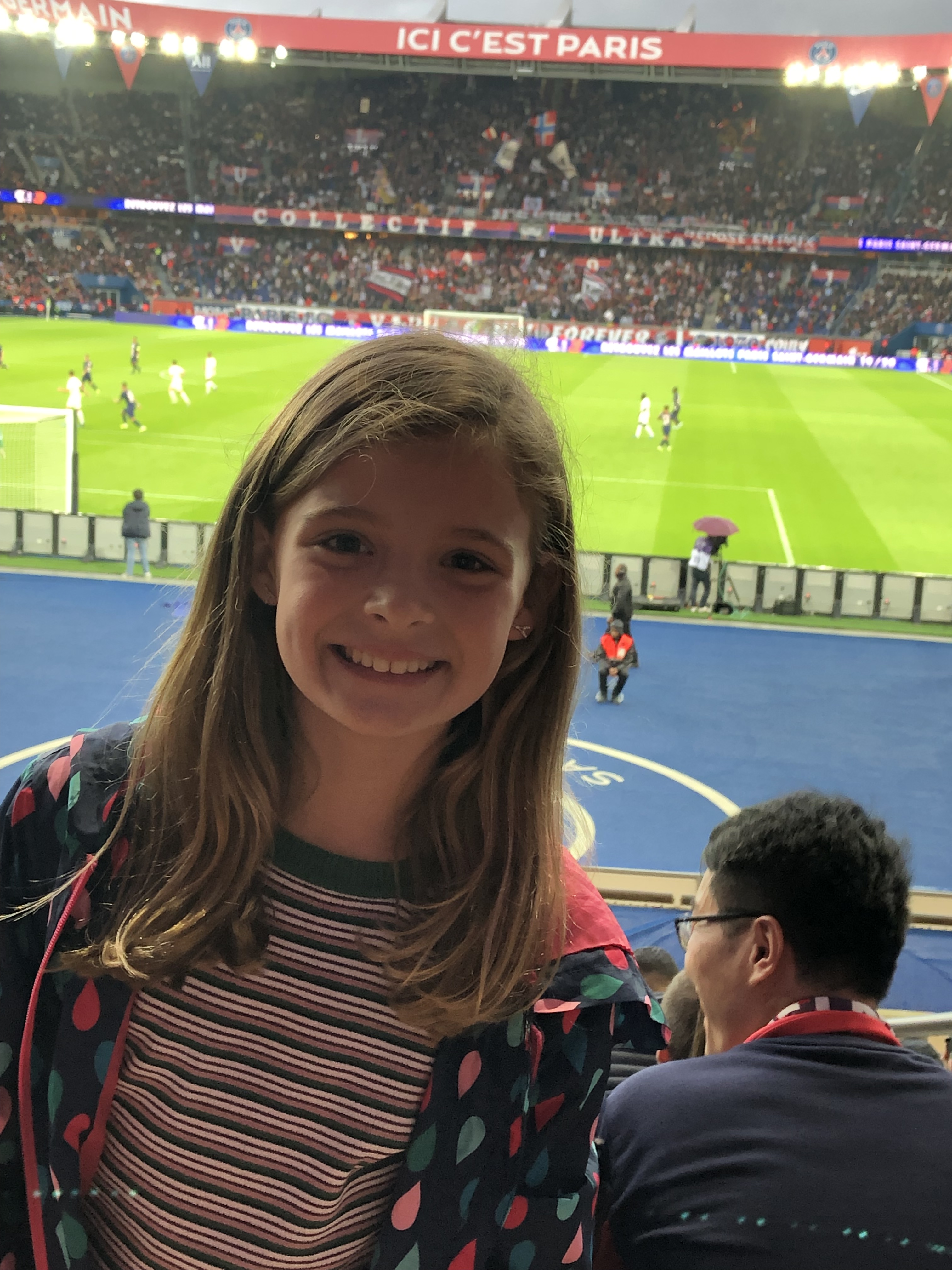 Day 41 Saturday, October 5: It’s the weekend. It’s the weekend. We go shopping, we watch soccer and we sleep in! That’s our little running joke/weekend song…feel free to change it as you see fit. We leave Geer at home and head off to do a little shopping at Les Halles because it’s getting cold and I guess we didn’t think of that! We head home to get the boy and take off for the Library. They offer an acting clinic with a local theater group. This is precious time for the kids to be with other kids, and they seem to enjoy it. After, our friends walk us to the Parc de Princes, home of the Paris Saint Germain soccer team. I had hoped that Geer would be able to play some soccer here, but in the area where we live, there’s not much soccer right now. They play in the summer and there are leagues but most are outside of the city. He’s pretty bummed he missed soccer this year, so this is me trying to make up for it. Apparently PSG is the bomb! They are the most successful French football club in history. I have to confess, I know almost nothing about soccer and totally nothing about this league, but we head off to the game feeling lucky. Geer knows very little, too, but he’s excited. I’m in awe that it doesn’t seem so crazy as we approach the stadium. I think it’s because everyone comes in on public transportation so there aren’t a million cars crowding the street. The Parc holds a max of 50,000 fans, and there are probably close to that many here at their October home opener. No cheerleaders, but several sections of fans who keep the cheers going. There’s a fair share of painted bodies and flags and horns. It was so fun! Of course, they crushed their opponent 3-0 without even really trying. I nervously lead the kids out thinking the metro will be wild, but with trains coming every minute, it only took us about 30 minutes to get from the stadium into the train and headed home. We would have made it, too, except Carson had to go to the ‘toilette’ so badly that we had to hop off at a random stop. NOTE TO SELF: Make children go to the restroom ALL.THE.TIME. Anyway, we rush off and I tell her to walk confidently into this nice restaurant and find the restroom like she belongs there. It works. The night is nice and I’m so cheap that I insist we walk the rest of the way since we’ve already used our Metro ticket. I’m so glad I’m so cheap. As soon as we turn on Rue de Rivoli, the main boulevard that leads to our home, we see a parade! It’s Nuit Blanch…the White Night celebration around the city. I had forgotten because we had other plans, but this night many museums stay open late and art installations can be found all over town. The final float of the parade is a strange, space-like float with lots of plastic and fans. Something white is being blown from the float. We get closer and find that it’s cotton candy! The kids (along with thousands of our closest friends) chase the float, eating some of the cotton candy and basically getting a candy coating of their own. They eat and eat and eat. I finally pull them away and we walk ahead, faster than the parade, to see dancing ladies, men in kilts, bagpipes and various parade entertainers. It was such a fun close to a great Saturday.