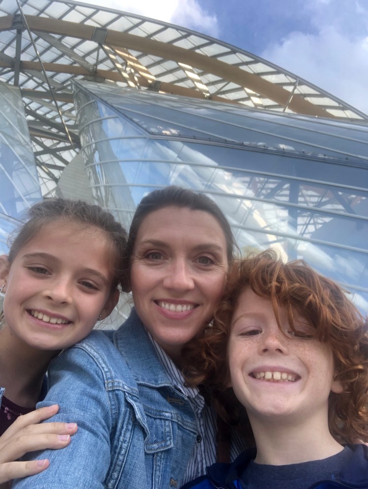 Day 43 Monday, October 7: Have I mentioned that I am sorry this is so long? Let me just cut to the chase. We head to the Foundation Louis Vuitton to meet the McLaughlins for an exhibit. Are we running late? Yes. Did we run 3 blocks the wrong way when we exited the Metro in a new part of town? Yes. Is it really my fault? Yes. Do I try to blame the kids anyway? Yes. There, I said it, are you happy? You’ll recognize this building, designed by Frank Gehry. It kind of looks like a glass and metal Noah’s Ark. Super cool. Anyway, there are no handbags or leather here, but there is a new exhibit about Charlotte Perriand. This women was a pioneer of modernity and a leader during life (1903-1999). She was a designer/architect and a contemporary of Picasso. She worked with artists to create functionality and unity in art and furnishings. She also didn’t get the credit she deserved for her innovative ideas. Basically, if you see it at Ikea, Charlotte thought of it first. She really did so much more, all over the world, but one of her first big projects was in Japan. In honor, there were real Japanese artists sampling dance and song and instruments for us in a small theater setting. I know these instruments must have been old and primitive, but the songs have no rhythm, no beat. And the intense and profuse effort to make this primitive flute blow paired with the moaning chants and ancient dance and kimonos somehow turned the tickle box of the kids and me. We couldn’t contain it. We tried. We failed. We wailed. We cried we laughed so hard. One look from them and I was undone. Yes, that was the highlight of the day:). That’s all I’ve got!