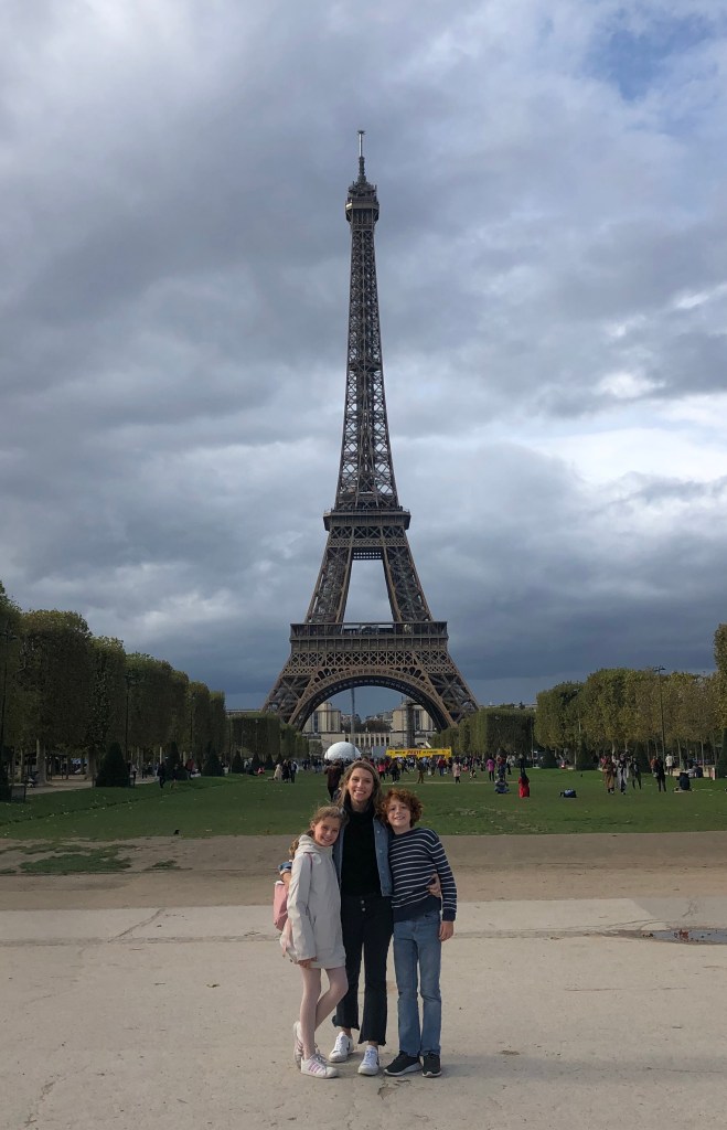 Day 34 Saturday, September 28: Saturday! We have some fun plans today, but first, we need to finish a little school. Kids work on that and I work on packing us up for a sleepover at the McLaughlins! I’ve also been messaging with a friend of a coworker of a friend of a friend. She lives in France and is from Alabama…I think she’s a tour guide. I must admit, I’m picturing a 30-something young girl who set off in a dreamy haze to France and is living large. After all, I have messaged with her a few times earlier and she was in Nice for the summer, then traveling to Russia for a week or so. She’s really on the go. So, we finally connect and she says she’ll come by the apartment on her way to catch the train to Nice again (this girl!!!). We wait and mid afternoon she buzzes in and has her suitcase, so we go down to meet her. I was right, she came to France at 30 years old after just finishing her graduate degree. This was some 40+ years ago, though. This amazing lady is STILL killing it here. She has several rental properties in Nice and in Paris (the kids helped her message some potential renters), she speaks 3 or more languages and is a certified international tour guide. She is busier than I ever thought about being! We loved have a drink and a pastel de nata with her and learning about France and her life here. What a treat! So, once we split ways, the kids and I head over to the 16th to meet up with our friends. They take us to an amazing, huge park where the kids play for hours. Then, they walk us around their neighborhood, which is more residential and a little more quiet compared to ours, but still has everything you would need right outside your door. They serve us an amazing meal of lasagne and baguette and chocolate they brought back from Amsterdam. We play ‘In the bag’ and laugh and laugh at the Iron Lady gesture from Geer, Carson’s picture of Oprah, and the fact that Donald Trump made it into the game 2 times! We fall in to bed tired and thankful again to have met friends that we all enjoy. Betsy’s husband was out of town for work, which made this fun and games sleepover possible:).
