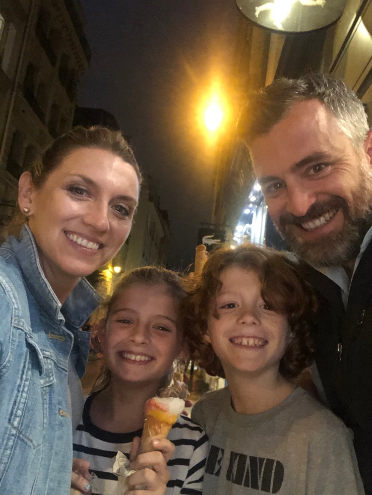 Day 21 Sunday, September 15: We had planned to try out Hillsong Church in Paris, which offers a bilingual service at 10. We weren’t sure what that meant, but we got ready and took the 50 minute long walk to the church, which was in a performing theater. Everyone was very welcoming and we took our seats early, the place was maybe 25% full. But by the start it was packed. Songs were in French (captions in French and English) and in English (captions in both). The Australian lead pastor’s words were translated into French from the stage, and the Canadian guest speaker’s sermon in French was translate into English from the stage. The interpreters were amazing…carrying the same tone and inflection and passion that the original speaker had. It sounds confusing, but it worked. We all loved the message on shining your light. We are lights in our world if we are children of God. Are we shining in a bright room at church only, or are we shining in dark places as well? The 50 minute walk there took 50 minutes back and we were ready for a yummy brunch and we had one! The boys rested and followed along with football. Carson and I walked around le Marais. Much of Paris is closed on Sunday, but this Jewish area is closed to cars but open for business. It was bustling with people enjoying the sunshine and shopping up a storm. Finally, for dinner, we got that Falafel and it was delicious. The kids have been waiting to eat this until Edgar came and I think they really enjoyed it! It’s different, for sure, but they are learning to be open to try new things and this was no exception. We tried glace at Grog for our last night, and it was the best yet. Sadly, we said good night knowing Edgar would leave before the sun rose on Monday.