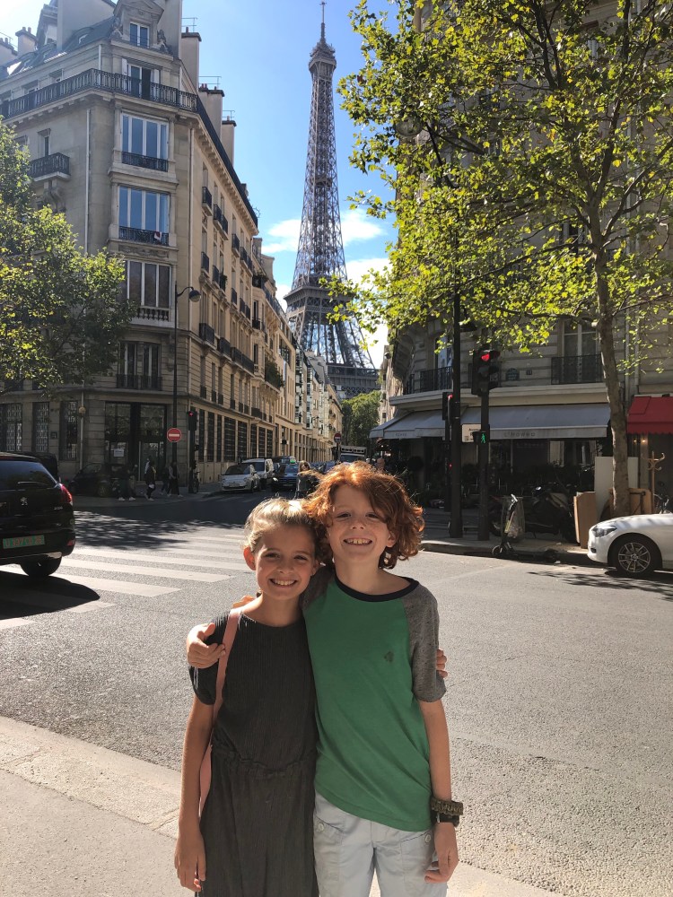 Day 18 Thursday, September 12: We wake up, we talk to him, we wait, we hang out the window, we hear from him, we wait, we watch. He’s finally here and the kids run down to escort him in. They’ve never been more excited. Like Santa Clause but better. Edgar had a sleep aid on the plane (Geer heard me say that Edgar has a sleep aid, and he said, “Oh really, what’s her name:)!) but somehow the jet lag does a number on everyone. We walk around to show him our hood, walk to the vast Bastille market and sit down for breakfast at the cafe across from our apartment. Back in the room, he’s wiped out. So he naps and the kids do school work. We get going again and walk some more, have a great dinner at our landlords restaurant, get the chance to talk to them and finally have our first of many glaces while Edgar is in town:) In McKee tradition, we want to watch a family movie. We choose Karate Kid (why, Netflix, can’t you show the original? Who is Mr. Han? What was wrong with Mr. Miagi??). Edgar gets through the intro song and we get through half. Good night moon.